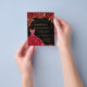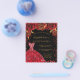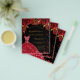 Por favor, note que este convite está no papel de folheto e é muito fino. Os envelopes não estão incluídos. Para convites mais espessos (mesmo design) visite nossa loja. Um convite moderno, na moda e glamouroso para uma Quinceañera, festa de aniversário 15. Um fundo preto com brilhos, um vestido vermelho e rosas vermelhas, florais. O nome é escrito com um moderno estilo escrito à mão. Personalize e adicione os detalhes da sua festa.