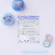 Por favor, note que este convite está no papel de folheto e é muito fino. Os envelopes não estão incluídos. Para convites mais espessos (mesmo design) visite nossa loja. Um fundo de olhar mal prateado. Decorado com confete azul real, brilhos. Personalize e adicione um nome e detalhes da parte. O nome é escrito com um script de estilo manuscrito.