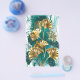 Ramificação com joias, ouro e folhas verdes de Ginko biloba à luz, pintada de fundo verde. Ginko biloba