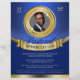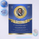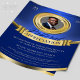 O folheto de reconhecimento de apreciação da Pastoral apresenta uma paleta de tom de cor azul e dourada, uma inserção personalizável de imagem de quadro de medalha de ouro e um banner dourado como colocação para texto adicionado. Um folheto formal e profissional para promover sua igreja e anunciar o serviço de apreciação do seu Pastor.