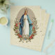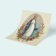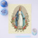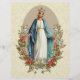 Com uma bela imagem religiosa católica tradicional da Virgem Maria Bendita, Nossa Senhora da Graça com rosas vermelhas em um fundo de renda vintage.