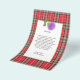 Uma maneira encantadora de dizer obrigado aos seus convidados de casamento com um poema fofo e atencioso que você pode enrolar em um rolo e amarrar com uma fita para colocar na mesa. Eles são feitos em um padrão xadrez de clã escocês elegante com uma ilustração de flor de cardo roxa. Estes podem ser personalizados com qualquer texto de sua escolha e usados para qualquer projeto
