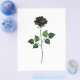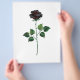 Rosa preto simbólico, desenhado artisticamente, com caules verdes e folhas sobre fundo branco. Rosa preto.