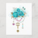 Chave de ouro antiga com rosas de turquesa de tendência, decoradas com folhas de ouro branco e miçangas cor-de-rosa e azuis. Cor agradável. Rosas de turquesa. Ouro branco. Tifania azul.