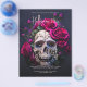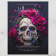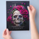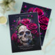 Festa de aniversário Gótica do Halloween Rosa vermelha Caveira Azul Escuro Convite Azul. Acesse sua festa com nosso convite para festas de Halloween! este convite personalizável é perfeito para uma celebração única e inesquecível de Halloween. Com texto fácil de editar para detalhes da festa, deixe as festividades começarem em estilo com o nosso convite temático que promete uma experiência de festa assustadora, mas elegante!
