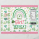 Tema: Dia de São Patrício Rainbow Shamrock. Ocasiões: Chá de fraldas feminino. Estilo: Bonito, Elegante, Boho. Cores: Verde, Rosa, Dourado, Branco. Gráficos: Arco-Íris, Aquarela, Falso Dourado.