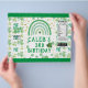 Tema [TODO texto é EDITÁVEL]: Dia de São Patrício Rainbow Shamrock. Ocasiões: Festa de aniversário infantil. Estilo: Bonito, Elegante, Boho. Cores: Verde, Dourado, Branco. Gráficos: Arco-Íris, Aquarela, Falso Dourado.