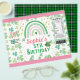Tema [TODO texto é EDITÁVEL]: Dia de São Patrício Rainbow Shamrock. Ocasiões: aniversário. Estilo: Bonito, Elegante, Boho. Cores: Verde, Rosa, Dourado, Branco. Gráficos: Arco-Íris, Aquarela, Falso Dourado.
