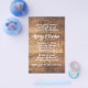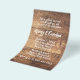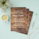 Rustic wedding, budget friendly invitations. The wood panel design is printed on flyer paper. White text templates are a chunky, hand-written font style. First names of couple stand out with two paragraphs for more text. Reverse also has the wood look.