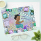 Envelopes para sacos de chips de chá de bebê sereia com sereia afro-americana em um lindo fundo de joia roxo e azul turquesa. Você pode personalizar este envelope para saco de chips de chá de bebê sereia simplesmente adicionando seus detalhes. Para montar, envolva o folheto em torno do seu saco de chips ou lanche e prenda com fita adesiva dupla face ou comum. Cabe em sacos de 28g de chips ou lanche - OU - você pode deixar a parte superior aberta, inserir um saco plástico e adicionar sua própria mistura de lanche a granel e selar a parte superior.