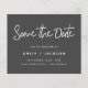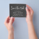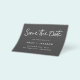 Cinza de Carvões Orçamentários (Cinzas) Script Mão Mínimo Moderno e Elegante Salva o Cartão-Postal de Casamento de Data. O cartão de convite para salvar a data inclui a tipografia moderna de script com letra manuscrita com um design chic e simples ao qual você pode adicionar sua fotografia personalizada de noivado.