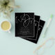 Um alternativo PAPER (não cartão) com valor de excelente SEM ENVELOPES com tamanho menor de 4,5" x 5,6" e a um preço orçamentário. (Os envelopes A6 padrão são do tamanho mais próximo ao ajustado) Script de Papel Nós fazemos Convite de Casamento Negro. Uma tipografia branca sobre na moda preto. Script do conjunto de na moda: Nós fazemos o palco central no topo.O resto do texto que você pode personalizar facilmente. As cores de texto e de fundo podem ser alteradas se você quiser se adequar melhor ao seu tema de casamento através da opção personalizar mais.