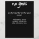 Dar este panfleto para promover a sensibilização para os OGM e para alimentar saudáveis sem produtos de ogm. Utilizar para anunciar reuniões, eventos ou apenas para promover a sensibilização para as comidas geneticamente modificadas e os riscos para a saúde associados a essas comidas. Este folheto é fácil de personalizar com suas palavras de um lado com um texto menor "sem ogm" no topo. Do outro lado, "no gmo's" está centrado em texto branco em negrito em um fundo preto com as palavras personalizáveis "For health comida" na parte inferior. As comidas de OGM são proibidas na União Europeia, mas são vendidas nos EUA sem rotulagem. Mostre os seus sentimentos e preocupações dizendo "Não há OGM". Alguns estados estão começando a exigir etiquetas, mas a maioria não está nesse ponto. Totalmente personalizável.