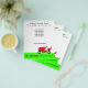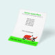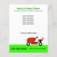 Folheto para anunciar o seu negócio de cuidados de grama. Design mostra cortador de grama vermelho na grama verde. Personalize adicionando os serviços fornecidos.