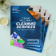 Estilo profissional moderno inspirado pelos serviços de limpeza. Espaço para o slogan e todas as informações necessárias sobre os serviços.