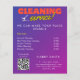 Panfleto para serviços de limpeza personalizáveis com detalhes de contato, além de código qr para linkar diretamente ao seu contato, seu instagram ou sua agenda para agendar uma consulta para seus serviços, edite os serviços oferecidos e aprimore seu negócio de serviços de limpeza