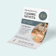 Folheto profissional e minimalista para serviços de limpeza com texto e foto personalizáveis.