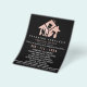 Folheto de negócios moderno projetado para serviços comerciais ou residenciais de limpeza, empregada doméstica, serviço de empregada doméstica ou faxina. Design, com dentro de rosa dourado e equipamento de limpeza, nome e linha de texto na frente. Personalize a parte traseira com os detalhes de contato do cheio e as mídias sociais.
