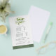O design de cartão de folheto botânico chic exibe seus serviços, sua lista de preços ou informações comerciais de forma elegante. Design apresenta um logotipo verde em cor d'água em verde-férn, floresta e primavera, moldando seu nome e/ou nome comercial em um fundo branco nítido com trim verde-floresta. Inclui quatro títulos personalizáveis e campos de texto do corpo, e espaço para as informações de contato da sua empresa na parte inferior. Para ajustar o layout, digite seu texto e use a função Personalizar para alterar o posicionamento e os tamanhos de fonte.