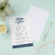 O design de cartão de folheto botânico chic exibe seus serviços, sua lista de preços ou informações comerciais de forma elegante. Design apresenta um logotipo de folhagem de cor d'água em marinho e azul-céu, moldando seu nome e/ou nome comercial em um fundo branco nítido com trim azul do porto. Inclui quatro títulos personalizáveis e campos de texto do corpo, e espaço para as informações de contato da sua empresa na parte inferior. Para ajustar o layout, digite seu texto e use a função Personalizar para alterar o posicionamento e os tamanhos de fonte.