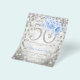 Modelo de convite da Elegante 50ª Festa de aniversário Azul Prata Floral e Luzes Glam. Apresentando um arranjo de flores moderno.