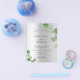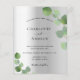 Por favor, note que este convite está no papel de folheto e é muito fino. Os envelopes não estão incluídos. Para convites mais espessos (mesmo design) visite nossa loja. Um convite de casamento moderno, elegante e minimalista. Um fundo metálico de aparência fina prateada decorado com verde de eucalipto, prigs. Personalize e adicione seus nomes e detalhes do casamento. Letras pretas coloridas.