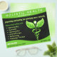 © Sunny Mars Design - Green Caduceus Alternativo Medicine Symbol Dark Background Folheto Horizontal - Saúde holística ou folhetos de marketing de promocionais médicos com símbolo Caduceus modificado com folhas e videiras em vez de asas e serpentes, contra fundo verde-claro. Personalize-o adicionando seu próprio nome comercial ou outro texto. Conceito de alternativo ou utilização combinada de alternativos e de práticas médicas convencionais.