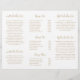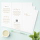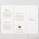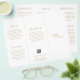 Folheto de ouro falso moderno e profissional com triplo folheto apresentando um design simples e mínimo com seu nome em um roteiro elegante e fonte de sans serif contemporânea. O modelo inclui várias seções divididas para seus serviços em um layout minimalista. A parte traseira tem as suas informações de contato e o código QR opcional. Se preferir, o código QR pode ser removido na ferramenta de edição de design. O dentro tem seções para informações da empresa e uma lista de preços.