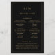 Simples orçamento preto e ouro falso Folheto do Programa de Casamento com um design moderno, mas elegante, com seu monograma de duas letras no topo e seus detalhes cercados por uma borda fina. As fontes e cores podem ser alteradas na ferramenta de edição de design. A frente tem sua ordem de cerimônia e a parte de trás tem sua festa de casamento e obrigado. Um design chic e na moda que é excelente para um casal minimalista. Estes programas de casamento baratos são impressos em folhas de papel para uma opção econômica.