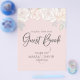 Este design apresenta um sinal de livro de visitas moderno e elegante, sinais de livro de visitas de recepção de casamento, minimalista romântico k023 modernidade verde, folhagem verde de aquarela botânica, caligrafia simples elegante e moderna, perfeito para primavera verão outono inverno, um arranjo moderno e sofisticado rosa peônia, tipografia caligráfica caprichosa, flores rosa bege modernas e sofisticadas, sinais de casamento imprimíveis rosa bege