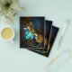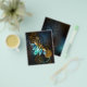 Barbeiro véu com asas transparentes azuis e lâmpada verde sobre fundo vestido, marrom, texturizado. Estilo Steampunk.