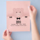 Um folheto celebrando o Ano Novo Chinês. Uma cara de porco rosa vestindo uma gravata formal de arco. Levantado pelos cascos pretos dele e a espreitar-te. Desenho bonito e caprichoso. Colocado sobre um fundo cor-de-rosa com corações desbotados. Prontos para celebrar o ano do porco 2019.