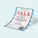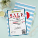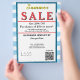 Sky blue and white watercolor stripes. Jewelry or any business . Ocean blue and white background to insert Sale price and date details. Upload Your Logo, or delete to leave area blank. Insert Name and Website or other contact QR Code. Summer written in yellow script. Sale written in large red typography. Thank You is written inside large red heart on backside. Original Design by TamiraZDesigns.