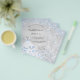 Por favor, note que este convite está no papel de folheto e é muito fino. Os envelopes não estão incluídos. Para convites mais espessos (mesmo design) visite nossa loja. Para um doce elegante 16, 16 anos. Um fundo metálico falso prateado. Decorado com poeira azul esfolada e um vestido para uma festa de maravilha do inverno. Personalize e adicione um nome, idade e detalhes da festa. O nome é escrito com um script de estilo manuscrito