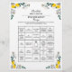 Tema de Limão Encontre o Convidado Flyer de Bingo de Noivado apresenta borda de limão e floral e modelo de pergunta de bingo de noivado engraçado .Um design perfeito para temas como limão,rústico,verão.Por favor, clique no botão personalizar para personalizá-lo com seu texto e perguntas.Visite minha loja " loveyouart" para outros designs ou similares .