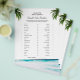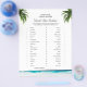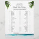 Tema de Praia Jogo de Chá de Noiva 'Would She Rather' Panfleto apresenta praia, folhas de palmeira, água do oceano e modelos de perguntas personalizadas para o jogo de chá de noiva. Um design perfeito para o jogo de chá de noiva que combina com o tema de praia, tropical e havaiano. Por favor, clique no botão personalizar para personalizá-lo com seu texto. Visite minha loja "loveyouart" para outros designs ou similares.