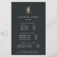 O design de folheto elegante para salões de cabelo ou estilistas mostra seus serviços ou sua lista de preços em caracteres brancos clássicos em um fundo preto macio enfeitado com um par de tesouras embelezadas por flores em folha de cobre falso. Inclui três títulos personalizáveis e campos de texto do corpo e espaço para as informações de contato do salão na parte inferior. Para ajustar o layout, digite seu texto e use a função Personalizar para alterar o posicionamento e os tamanhos de fonte.