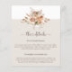 Inclua todos os detalhes para a conveniência de seus convidados com este cartão incluso. Apaixone-se pelos intricados sprays florais boêmios realçados com marfim e cobre! Neutros suaves com um toque terroso criam uma paleta elegante e leve para o seu casamento de estilo boêmio. Ideal para uma celebração outonal rústica e contemporânea em ambientes de fazenda ou celeiro e muito mais!