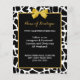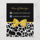 Saiba mais sobre a sua nova butique de moda com estes panfletos de mídia social de impressão de girafa branca e preta com uma imagem de uma fita amarela escura amarrada no arco chic. Personalize este design de impressão na moda, adicionando o nome da sua boutique ou salão, o site e as informações das mídias sociais. Imagem impressa plana, NÃO arco real.