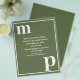 Design de tipografia simples e minimalista em um belo texto de tendências que emparelha fontes em negrito minúsculo para os modelos de texto de letra monograma e modelos de letra maiúscula para os detalhes que são fáceis de personalizar na popular cor de casamento do verde-oliva. Basta mudar as letras e os detalhes para a sua direita na página do produto. Todos os elementos são totalmente personalizáveis.