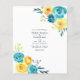 Turquesa e amarelo - convite floral de chá e limão com sotaque de coral com flores aquarelle e folhagem. Ideal para um casamento de jardim ou qualquer tema. Por favor, note que este convite está no papel de folheto e é muito fino. Os envelopes não estão incluídos. Para convites mais espessos no mesmo tema com envelopes inclusos, consulte a coleção abaixo.
