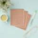 Flyer um padrão geométrico em laranja e branco