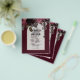 Belos tons de outono e inverno estão presentes neste convite de casamento temático floral em vinho tinto grená escuro que também apresenta uma chave de coração de amor rústico e vintage e layout de tipografia moderno e trendy. Este item de casamento faz parte de uma coleção maior que inclui convites de casamento (orçamento e tradicional), cartões de RSVP, Save the Dates, sinal de boas-vindas de casamento e muito mais. Veja a coleção em anexo para ver todos. Este design elegante e moderno é perfeito para o seu casamento floral clássico, seja na primavera, verão, outono ou inverno. 🎨 Design por LeahG® weddingdesignchic.com e 100xgifts.com. 📌 Fixe isto no seu painel de inspiração de casamento no Pinterest. ⬇️ VEJA TODOS OS PRODUTOS COM ESTE DESIGN PELA ABA ABAIXO ⬇️