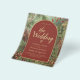 Belo terracota, flores de burgundy caem nesta vintage arca botânica, o tema do casamento com texto dourado.
