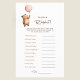 Celebrate the mom-to-be with this adorable "The Price is Right" baby shower game flyer! Featuring a sweet watercolor illustration of a bear holding a pink balloon, this flyer adds a whimsical touch to your baby shower festivities. Guests will have fun guessing the cost of essential baby items, making it a memorable activity for everyone. The soft, neutral color palette and charming bear design create a warm and inviting atmosphere for your special event. Perfect for woodland, bear, or general baby shower themes, this game flyer is a delightful addition to your party supplies and will surely be a hit with your guests as they play to win!
