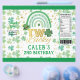 [TODO O texto é EDITÁVEL, exceto DOIS Tema Sortudo]: Dia de São Patrício Rainbow Shamrock. Ocasiões: Festa de aniversário infantil. Estilo: Bonito, Elegante, Boho. Cores: Verde, Dourado, Branco. Gráficos: Arco-Íris, Aquarela, Falso Dourado.