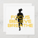 Uma corredora silhueta com texto amarelo moderno que diz Focus believe Breathe sobre esportes e equipamentos atléticos incluindo bolsas, T-shirts, camisolas, canecas, cartões, adesivos e mais, excelente para qualquer um que seja corredor a distância, corre maratonas, apenas adora correr em geral. Um design motivacional e inspiracional para o excelente.