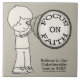 Little Boy é visto olhando através de um grande telescópio. As palavras na lente do telescópio dizem, "Foco na Fé". Ilustração de David A. Carrizales é de Christie Black. O guincho dos grandes sonhos de "Acredite no inacreditável que é você!" é visto abaixo.