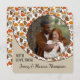 Cartão único, clássico, de moda, bonito e decorativo de Ação de Graças. Recortar com amor do texto e da sala para personalizar ou personalizar com uma foto e nomes (ou nome da família) de sua escolha. Com o clássico cor de laranja quente de outono, folhas botânicas vermelhas e marrons como design de fundo. E um poema personalizável e pensável da temporada de outono que cumprimenta o lado de trás do cartão.