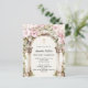 Um grande arco de mármore decorado com flores cor-de-rosa e uma cruz de ouro. Personalize e adicione um nome e detalhes.